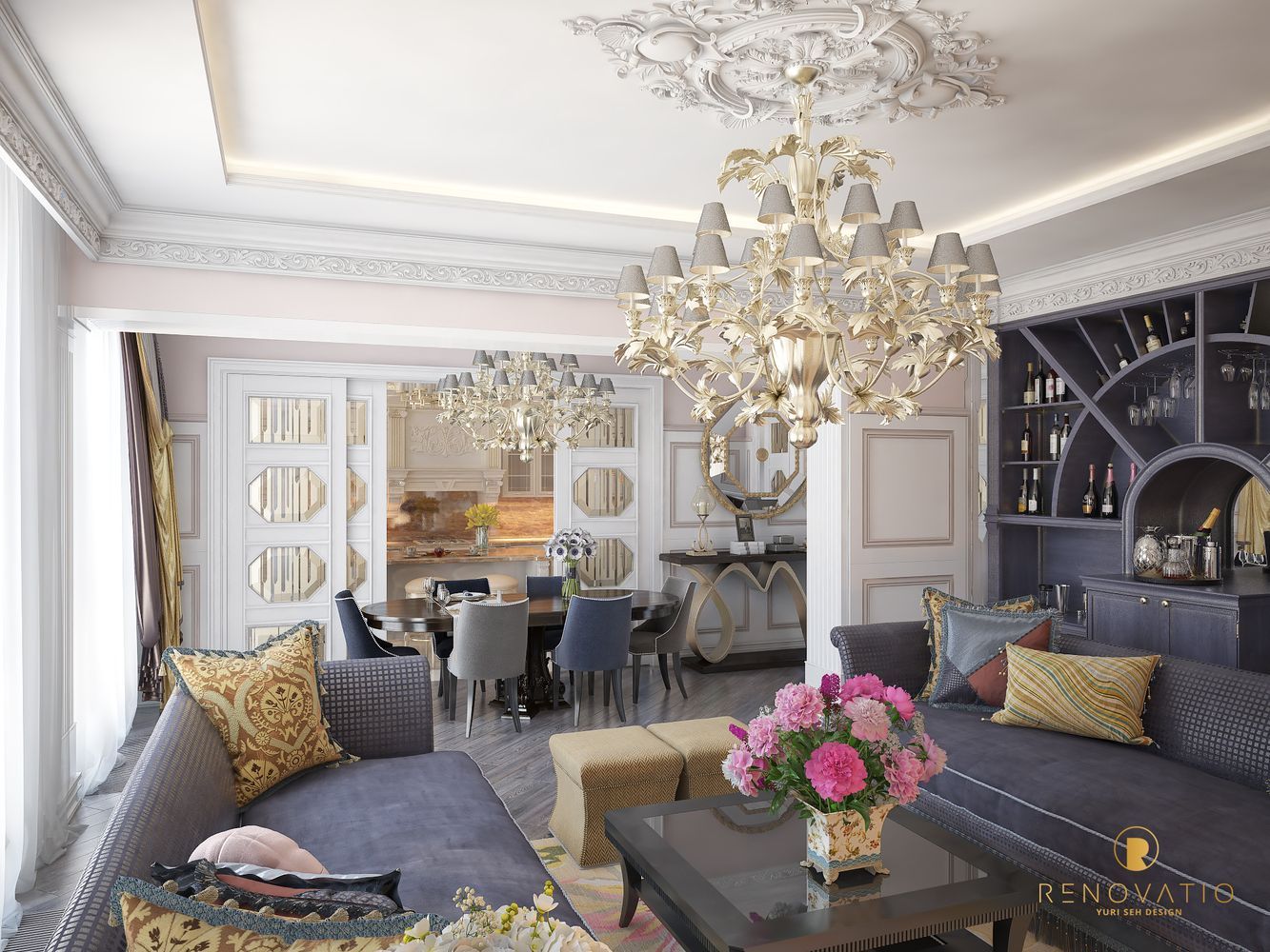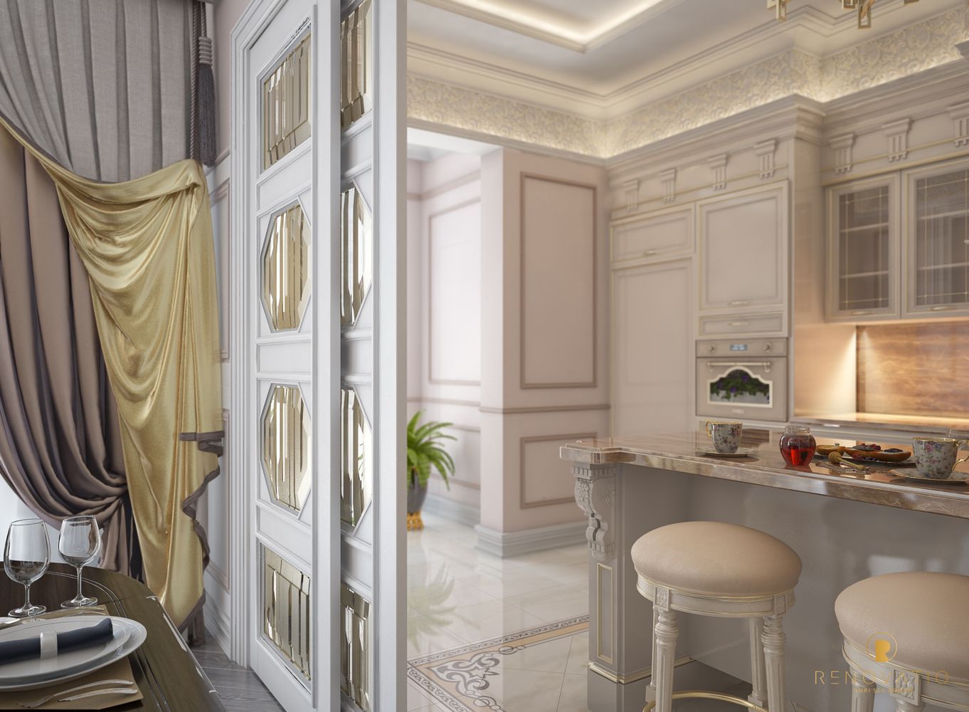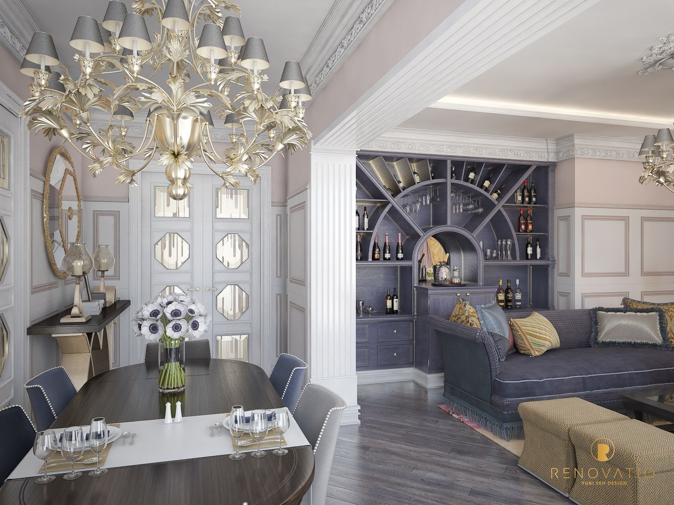 Elegant Art Deco interior. Luxury and bold forms, elegance - these are the main features of this project. In general, the apartment has an atmosphere of calm, rest, relaxation and comfort.