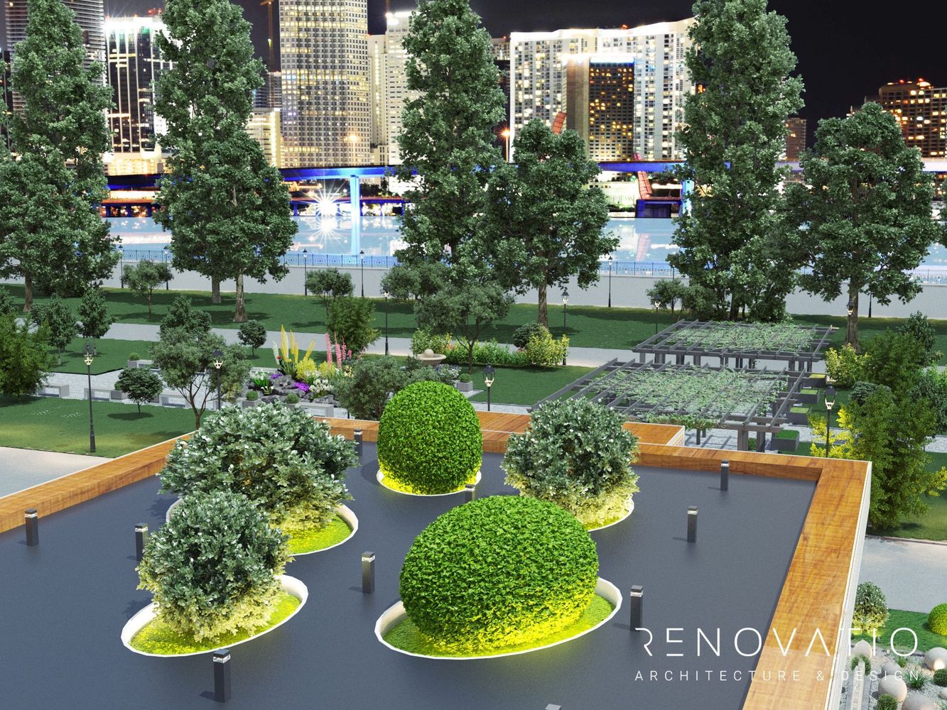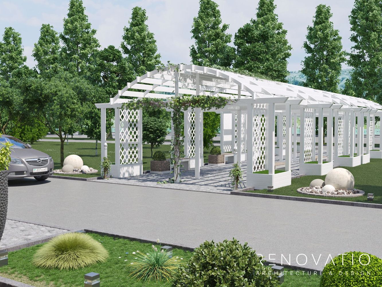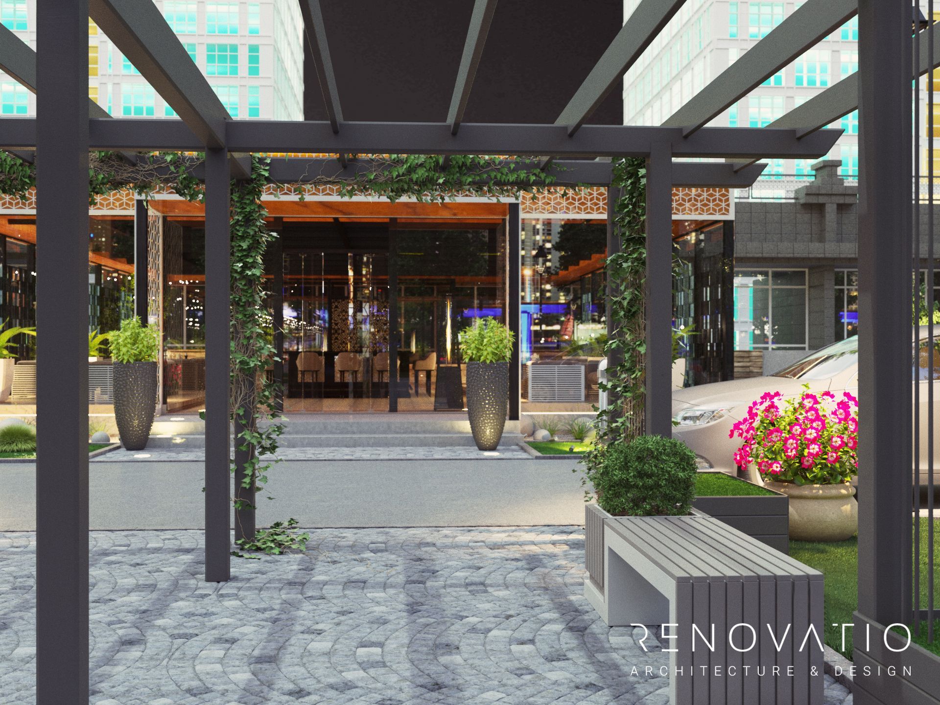 The design conveys the concept of the establishment as much as possible - it is convenience and comfort and the highest level of service. Therefore, we paid special attention to the territory near the entrance to the institution, the lawns and the entire entrance group are specially illuminated.