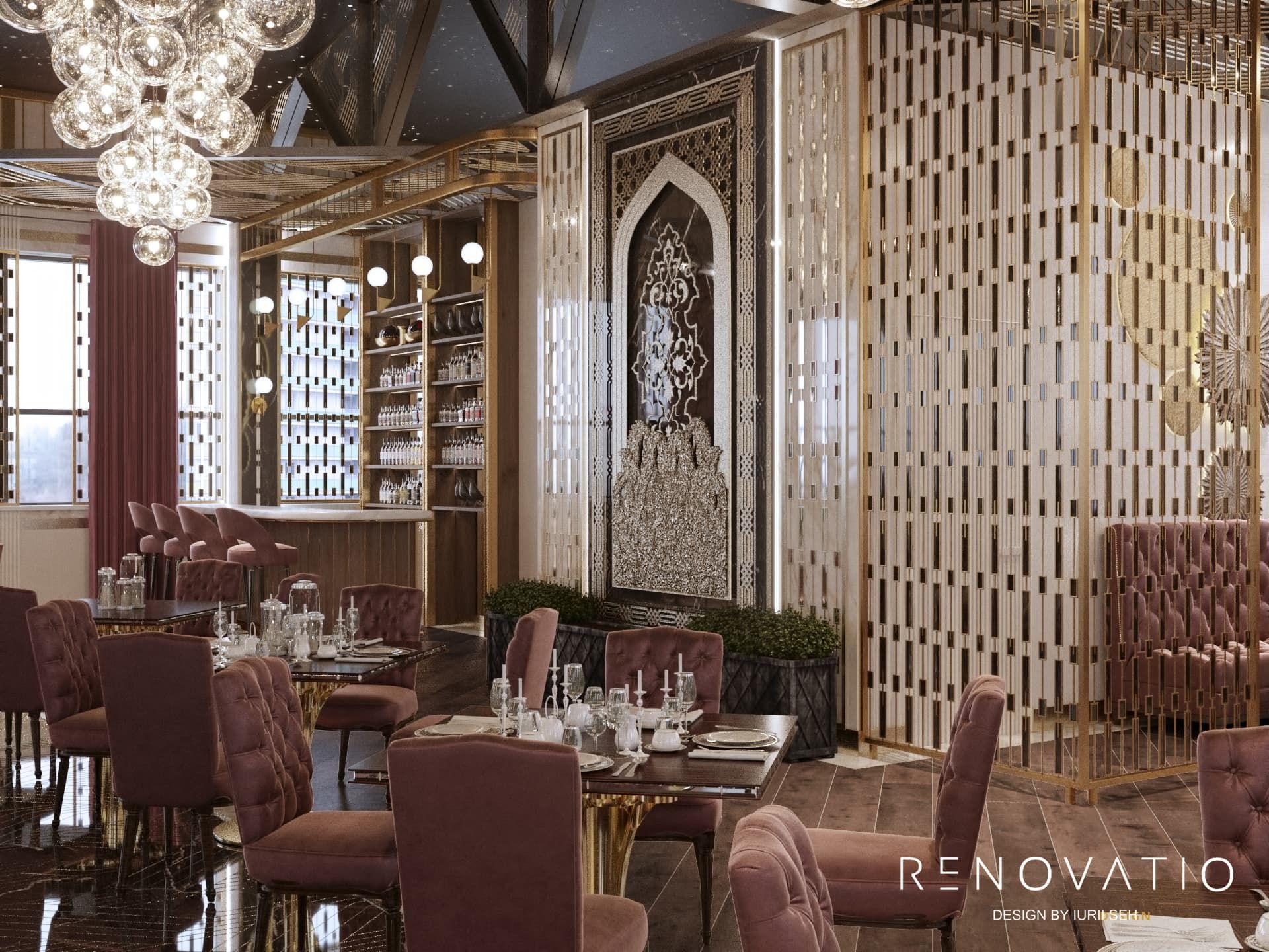 The restaurant with a huge glass terrace is style and chic. The total area of the restaurant is 9688 sq.ft.