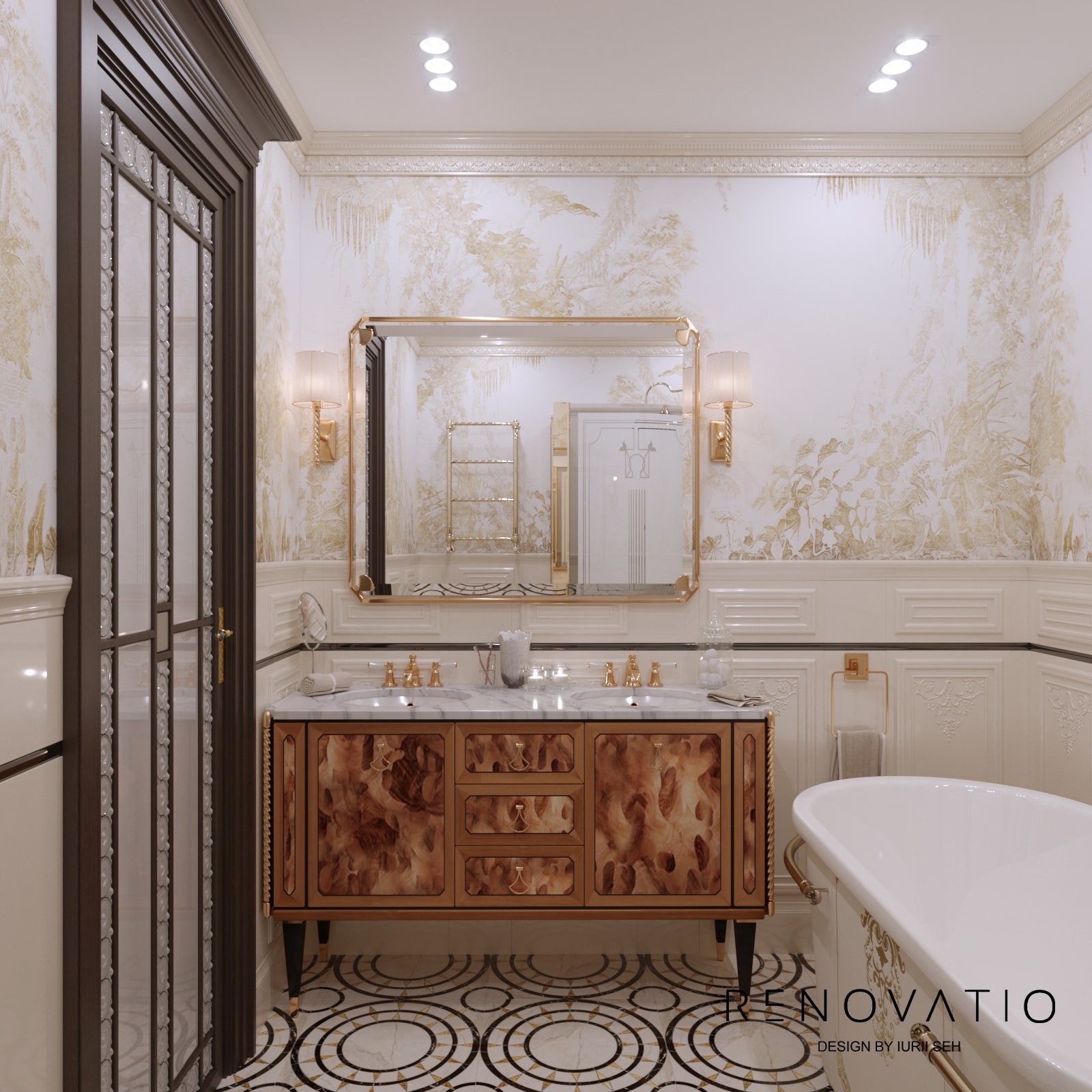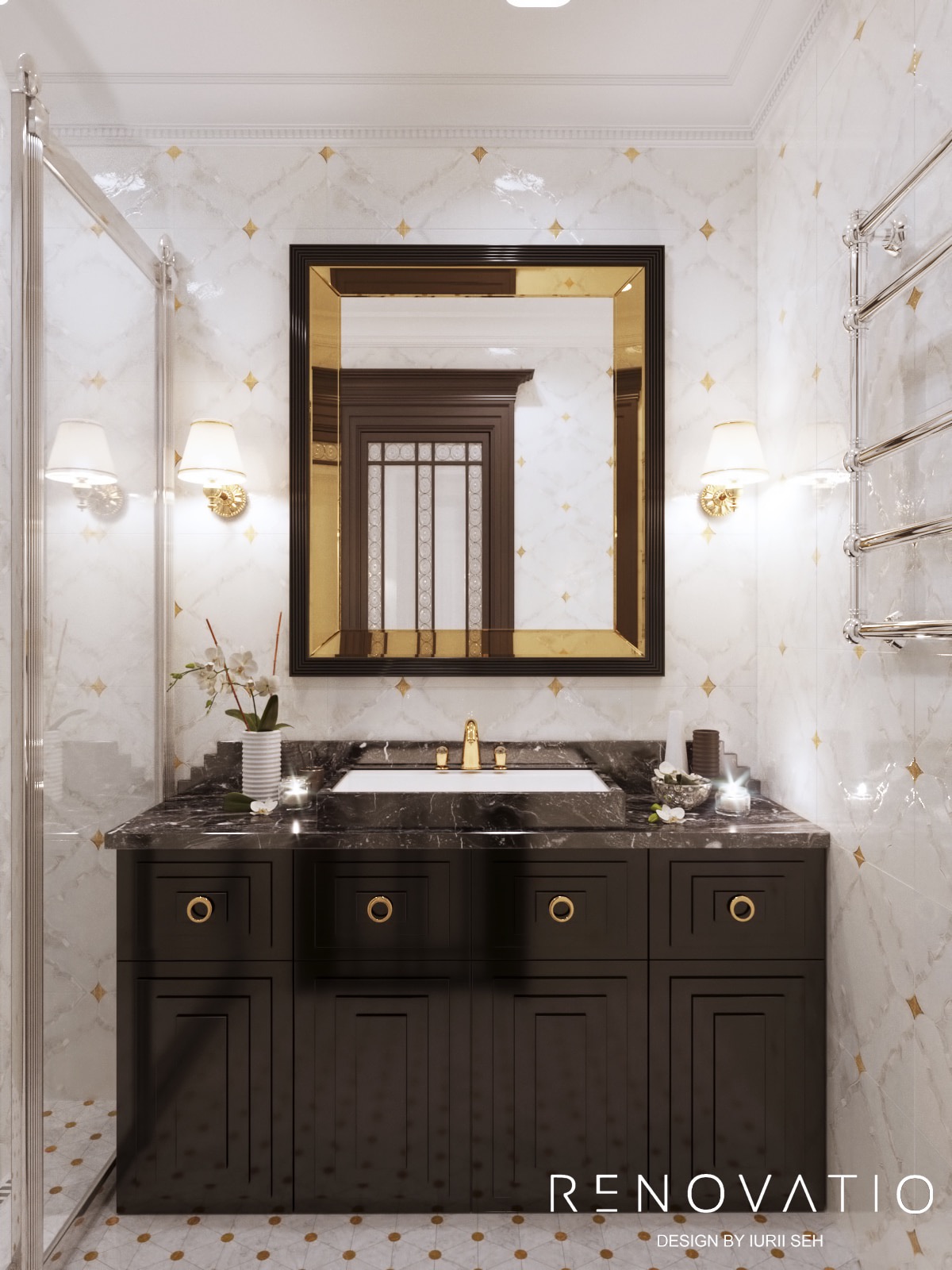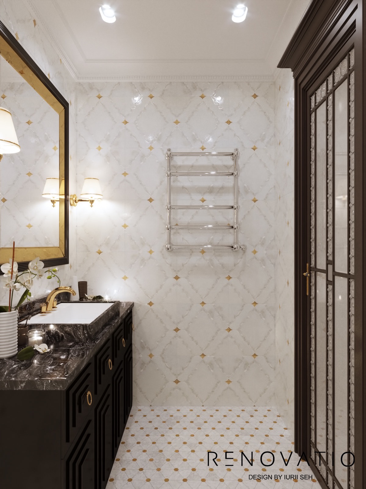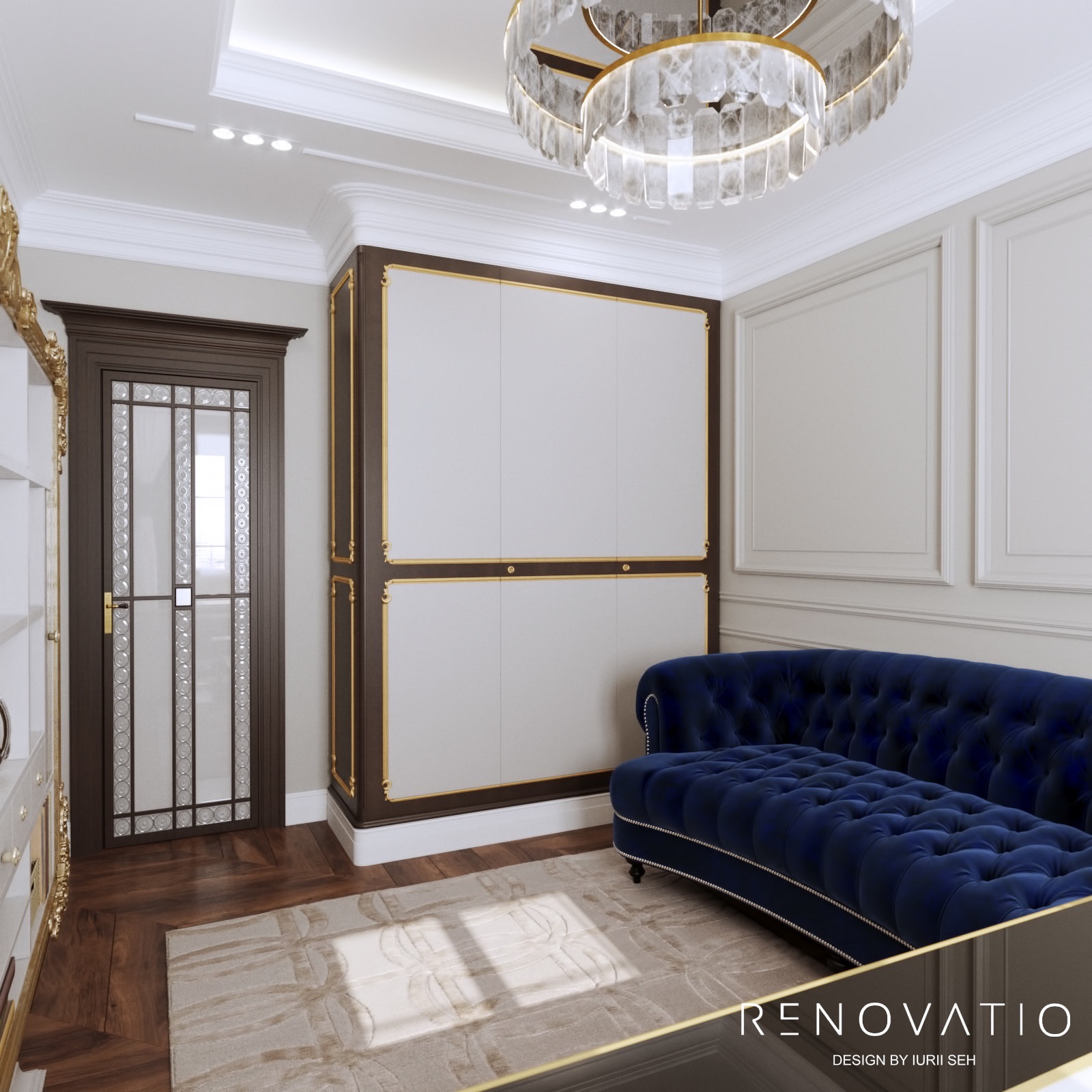 Bathrooms are small, but due to mirrors we were able to increase the visual space. The stucco molding on the entire wall has become an accent in the living room. It complements the art deco style, due to its location opposite the window, it is always noticeable. The design combines elements of neoclassical architecture with modern motives in an original way.