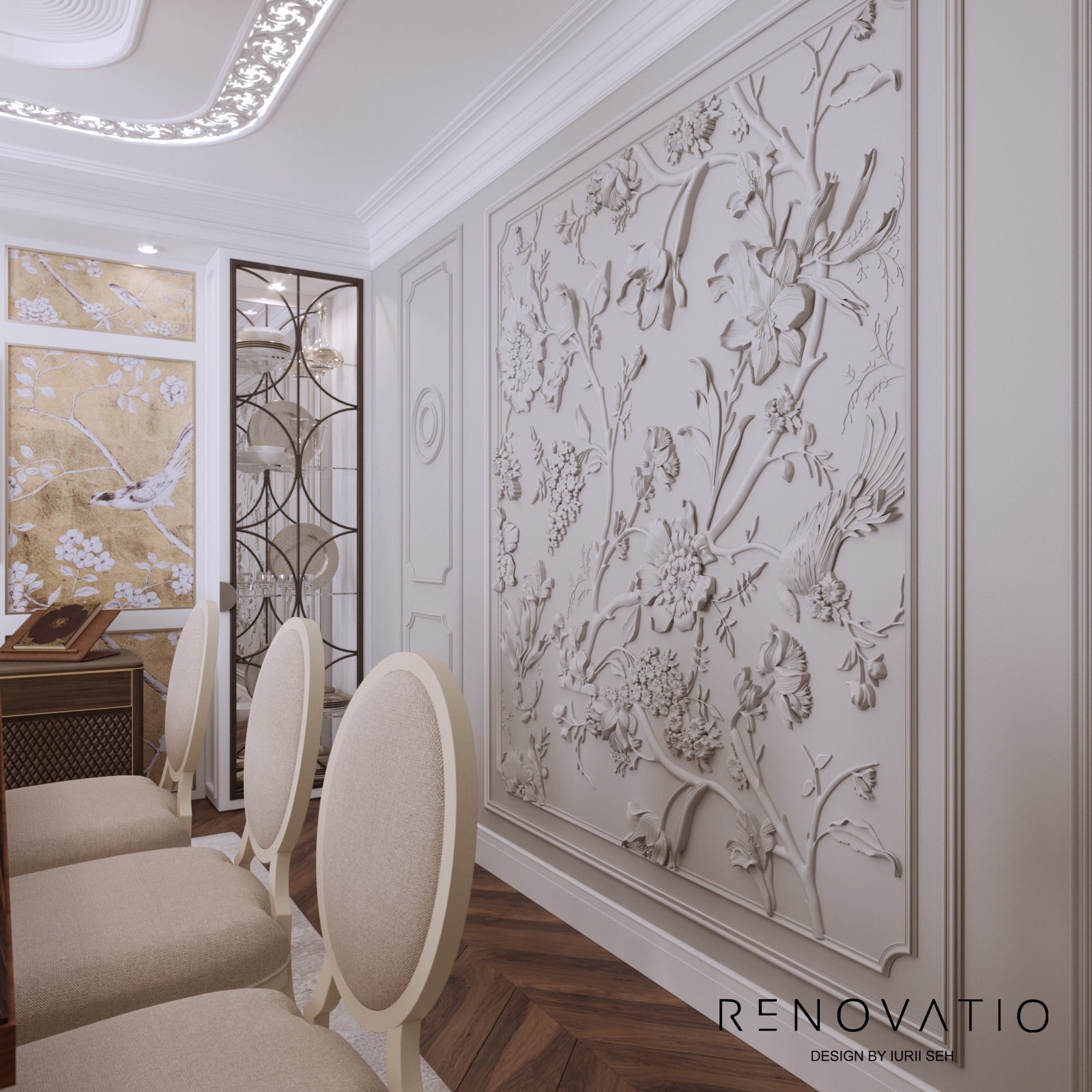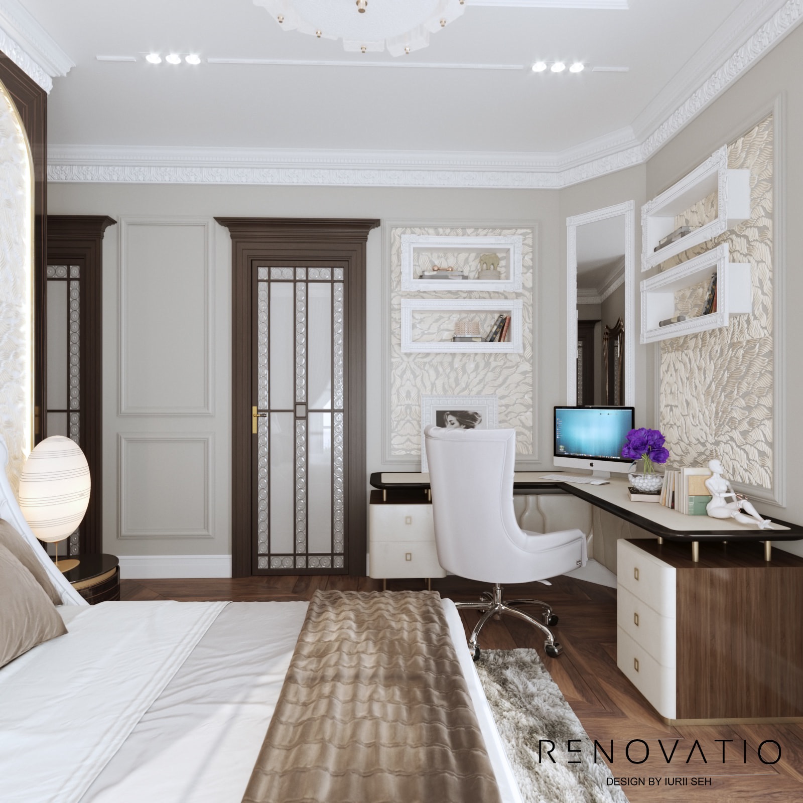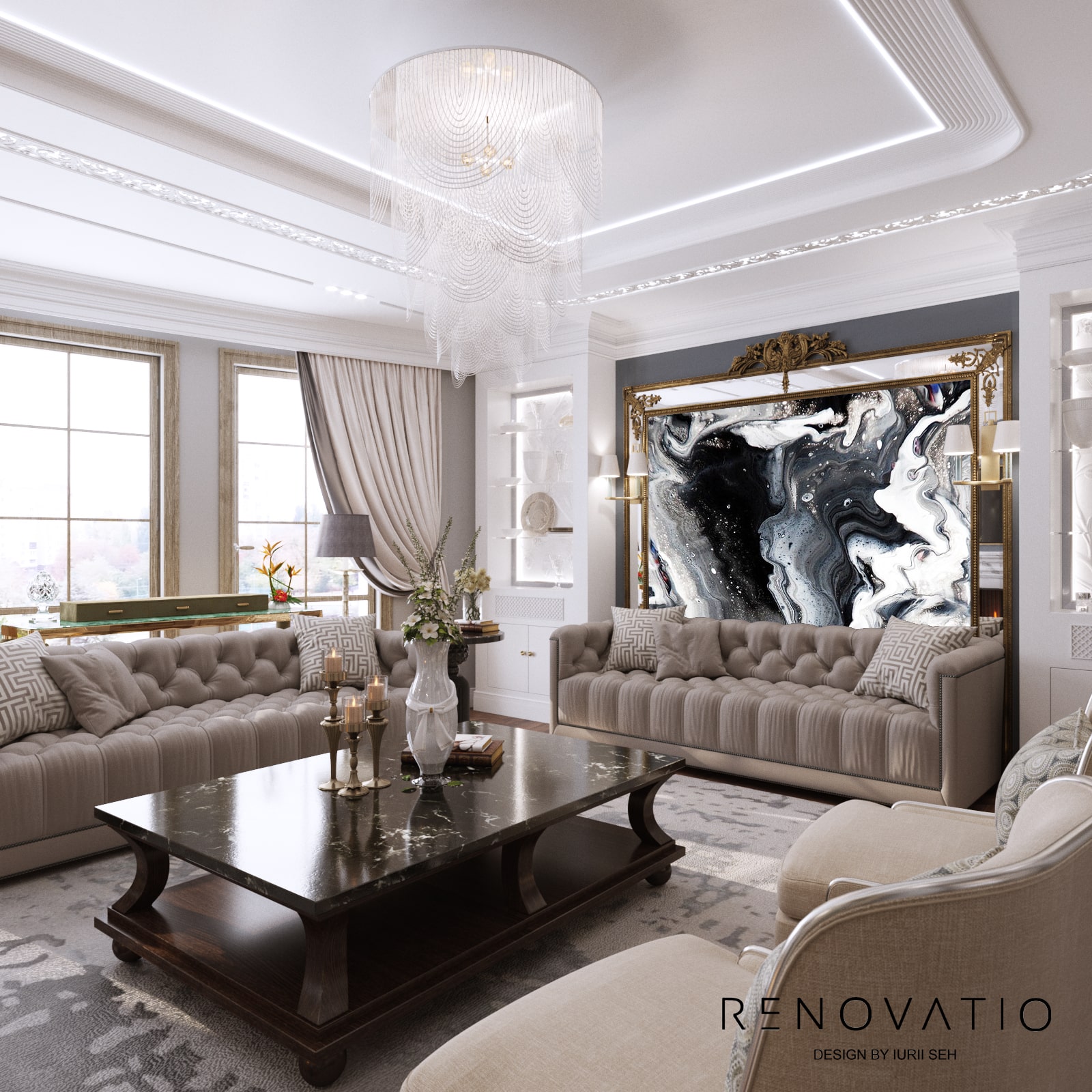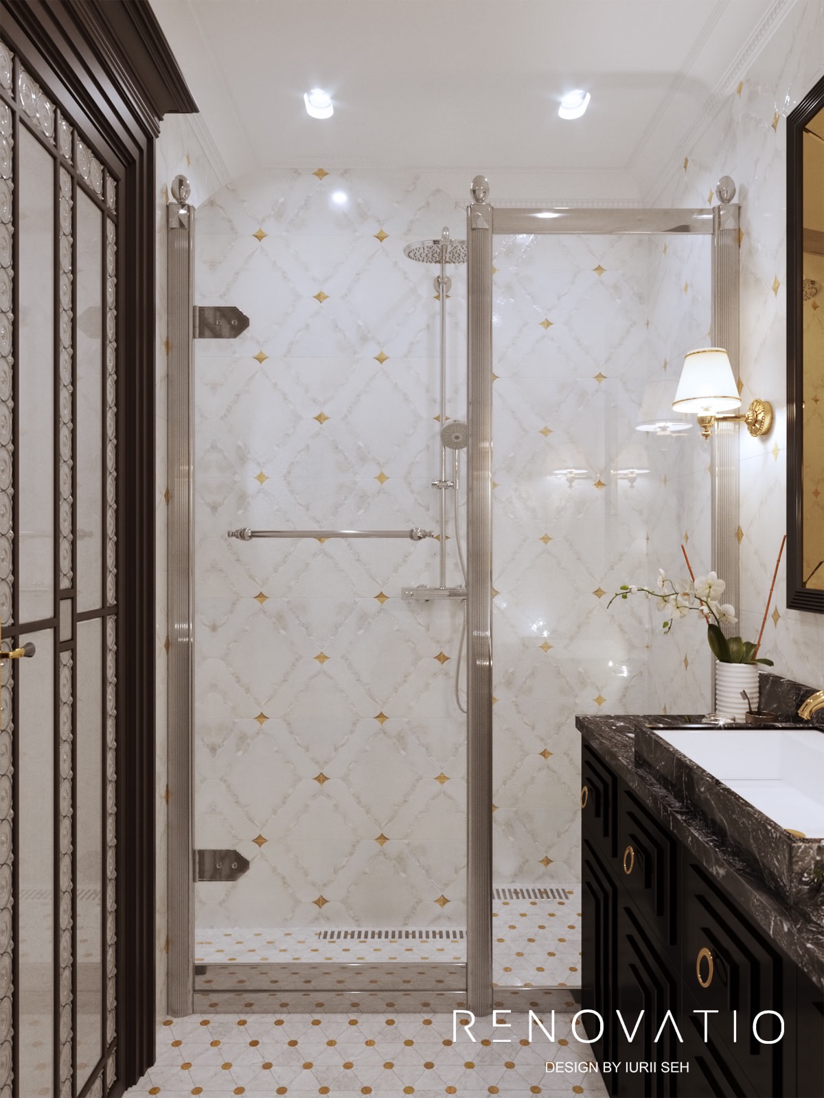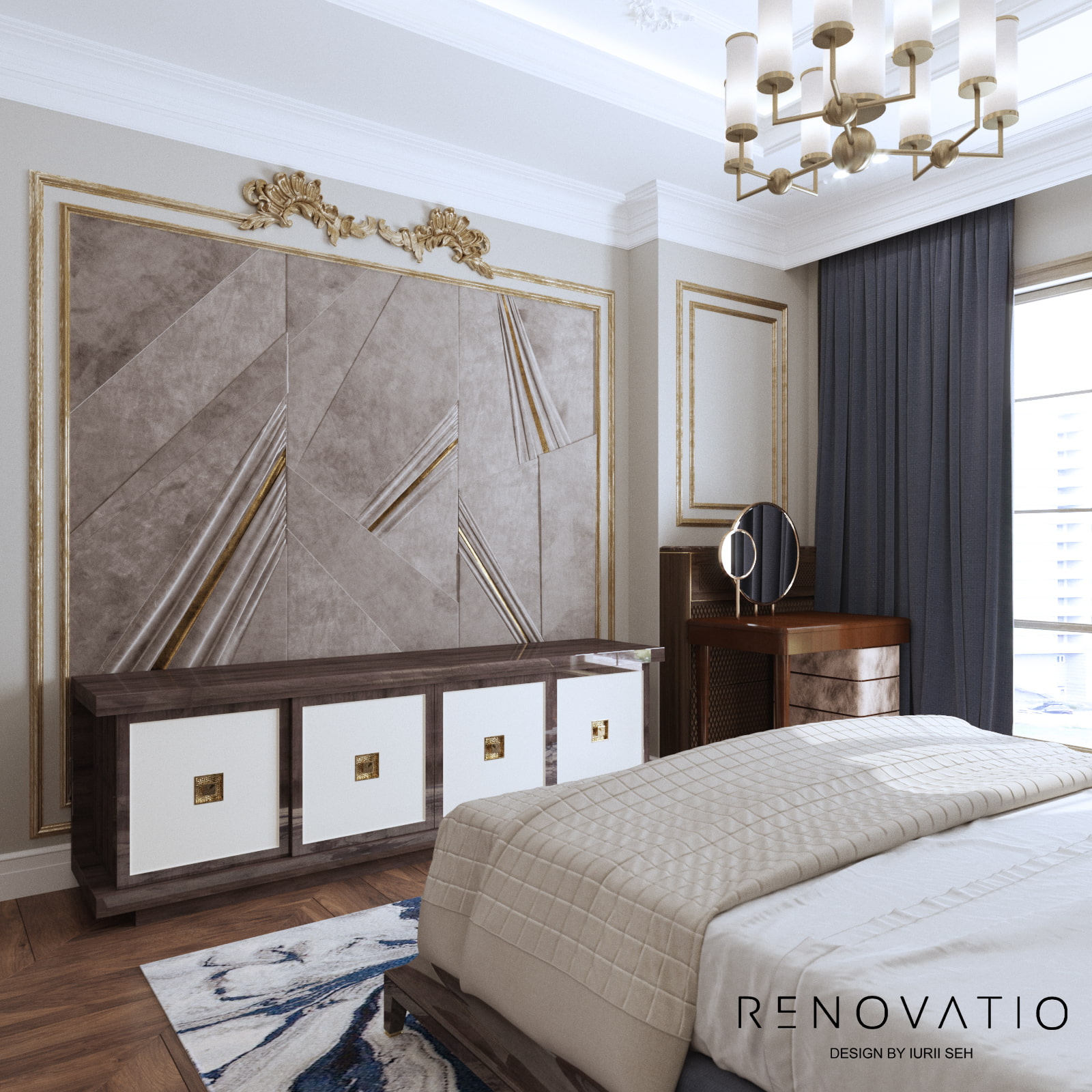 Bathrooms are small, but due to mirrors we were able to increase the visual space. The stucco molding on the entire wall has become an accent in the living room. It complements the art deco style, due to its location opposite the window, it is always noticeable. The design combines elements of neoclassical architecture with modern motives in an original way.