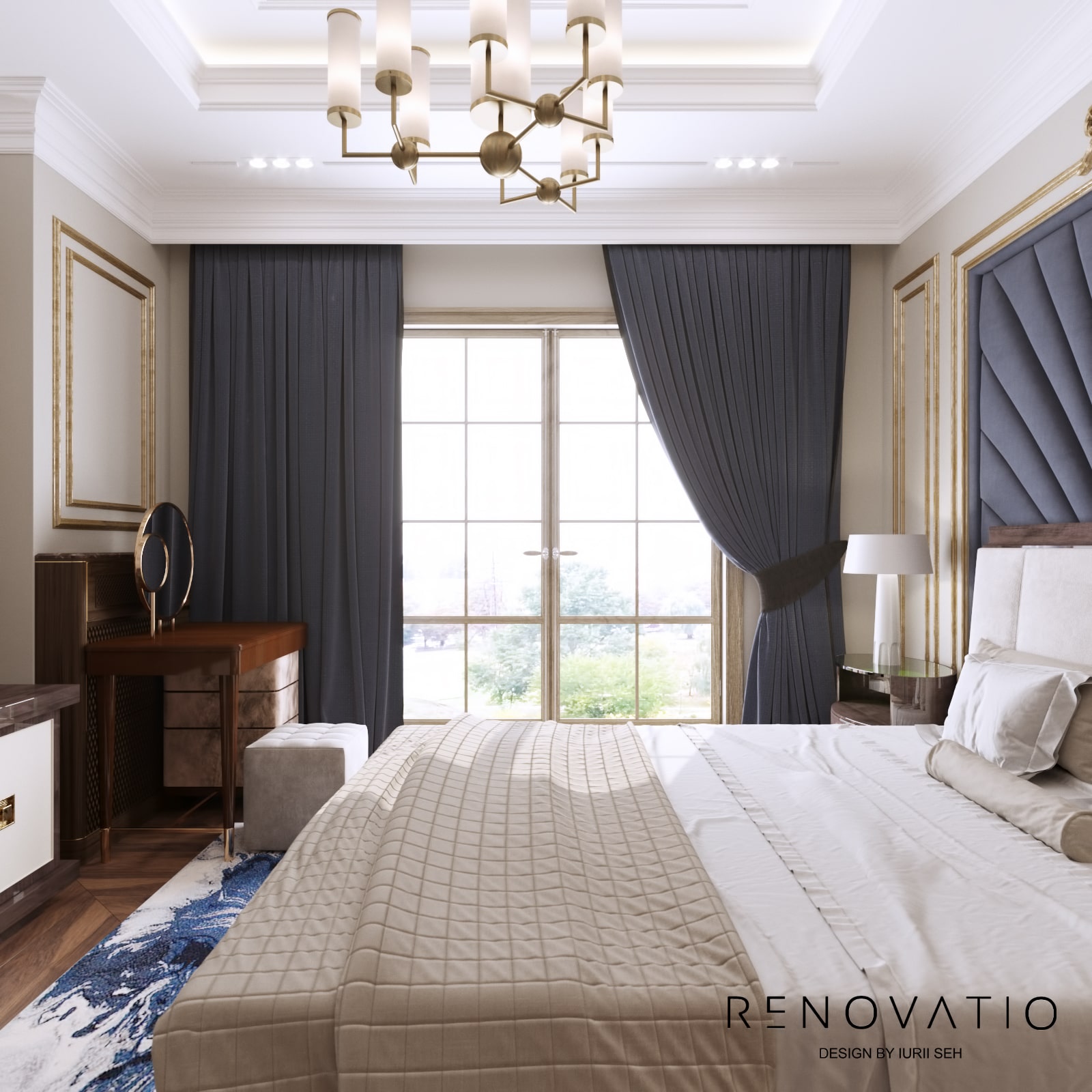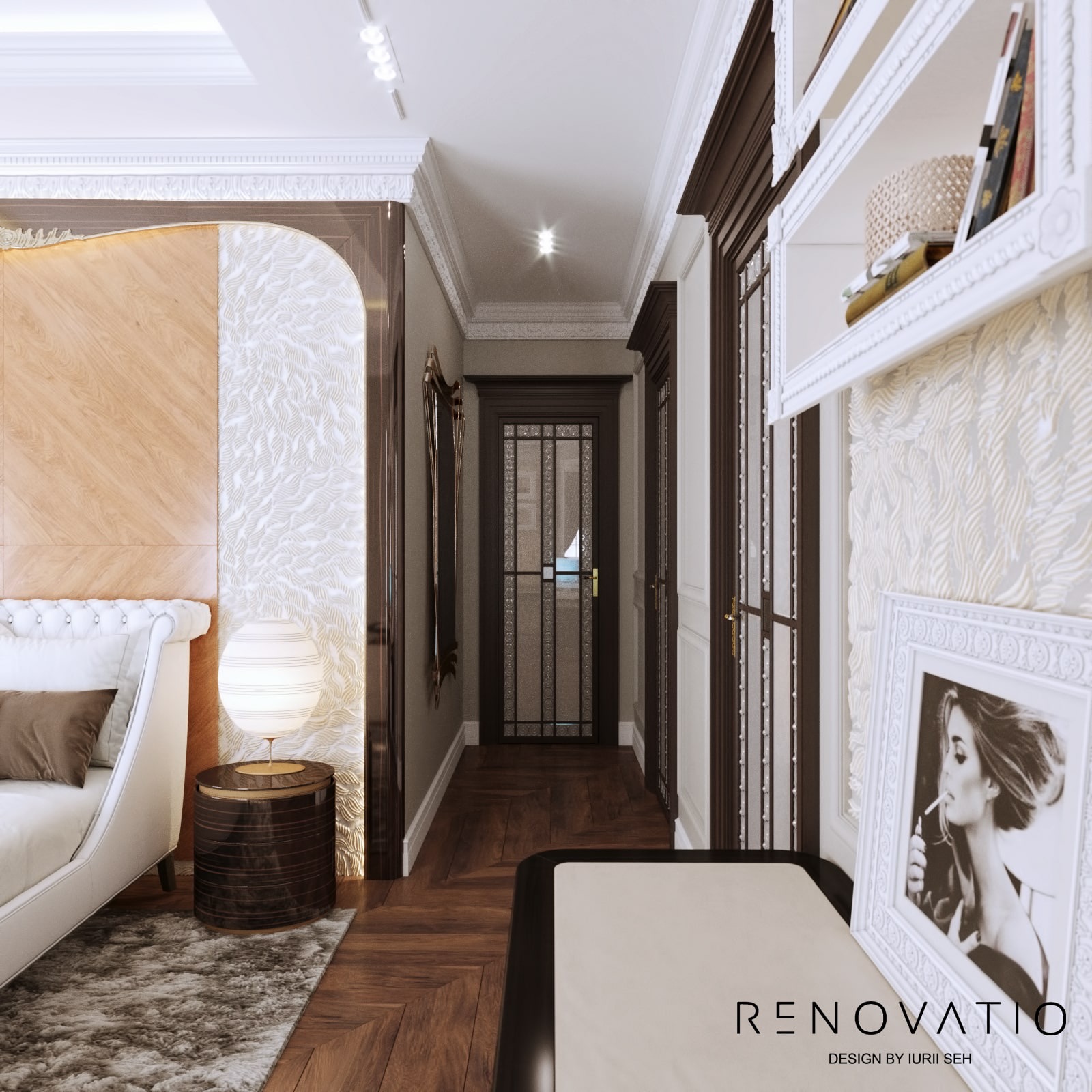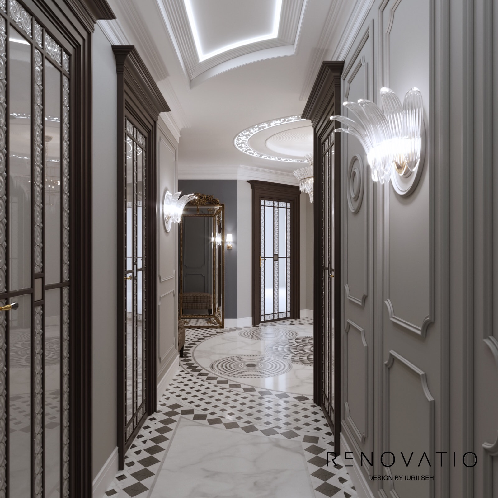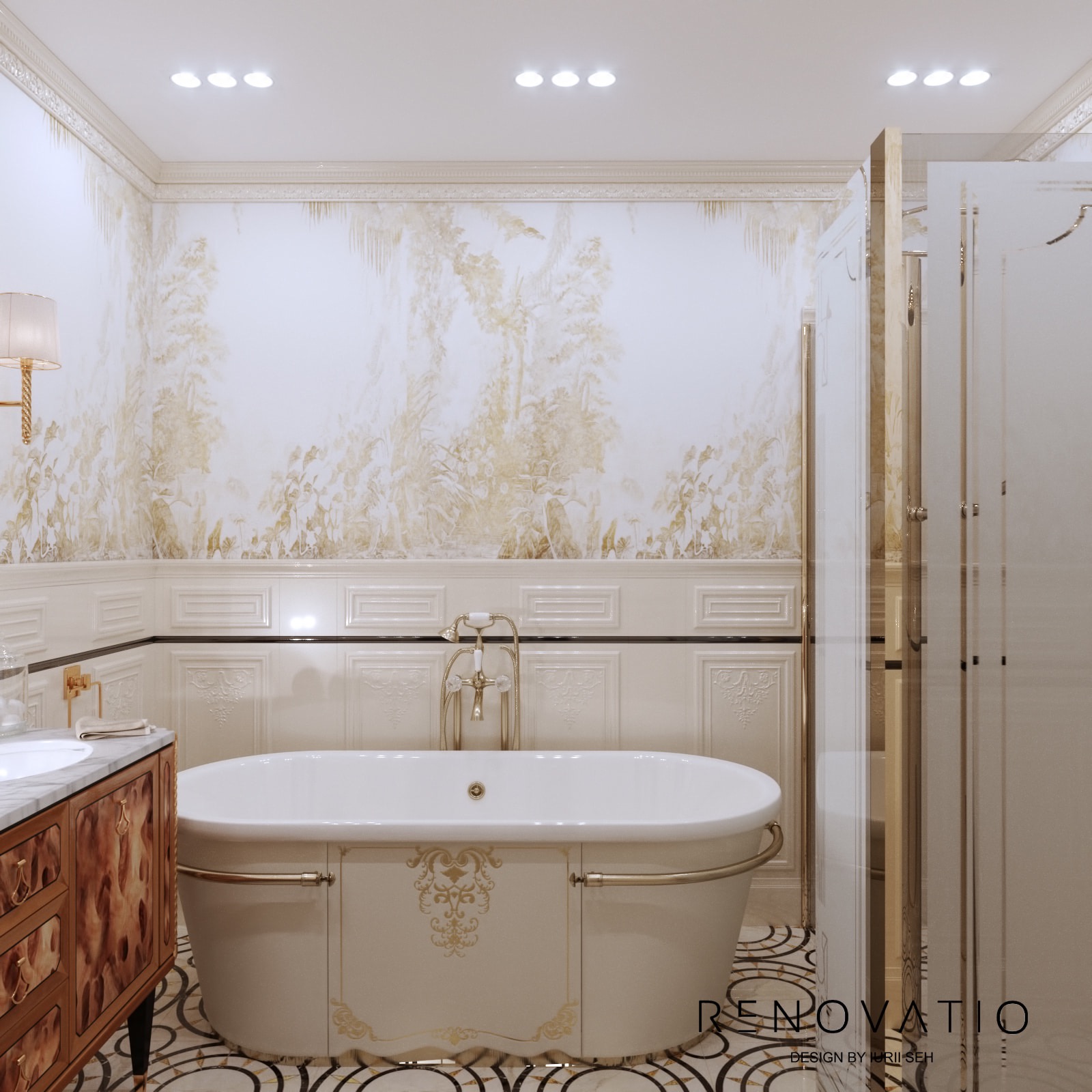 Bathrooms are small, but due to mirrors we were able to increase the visual space. The stucco molding on the entire wall has become an accent in the living room. It complements the art deco style, due to its location opposite the window, it is always noticeable. The design combines elements of neoclassical architecture with modern motives in an original way.