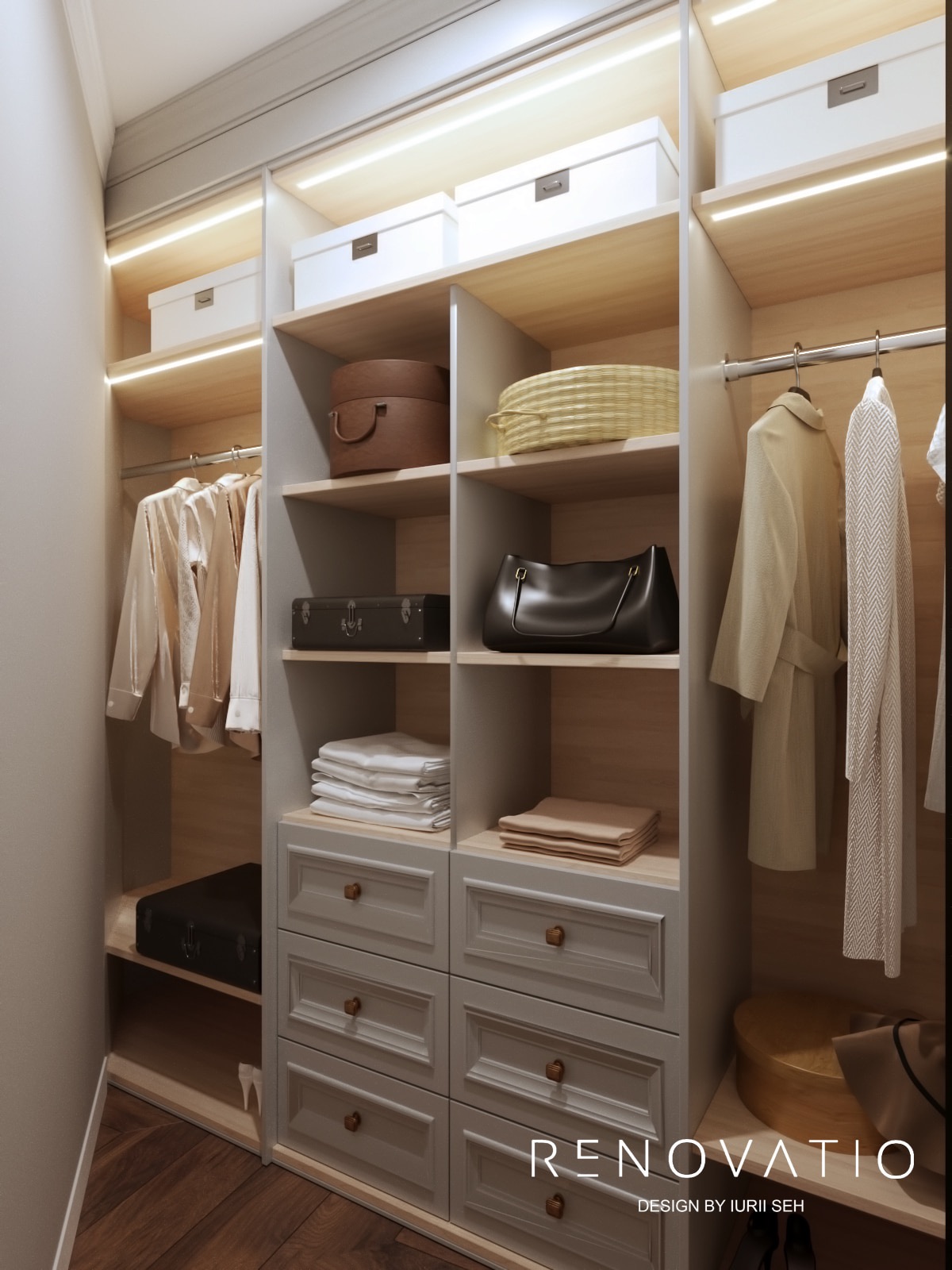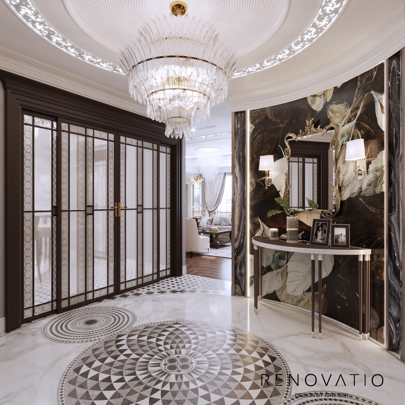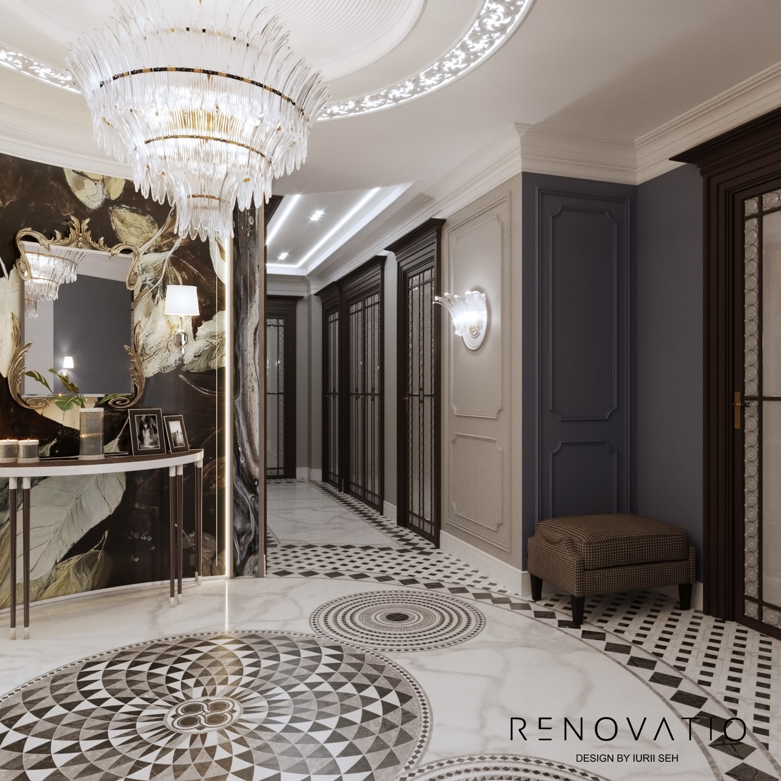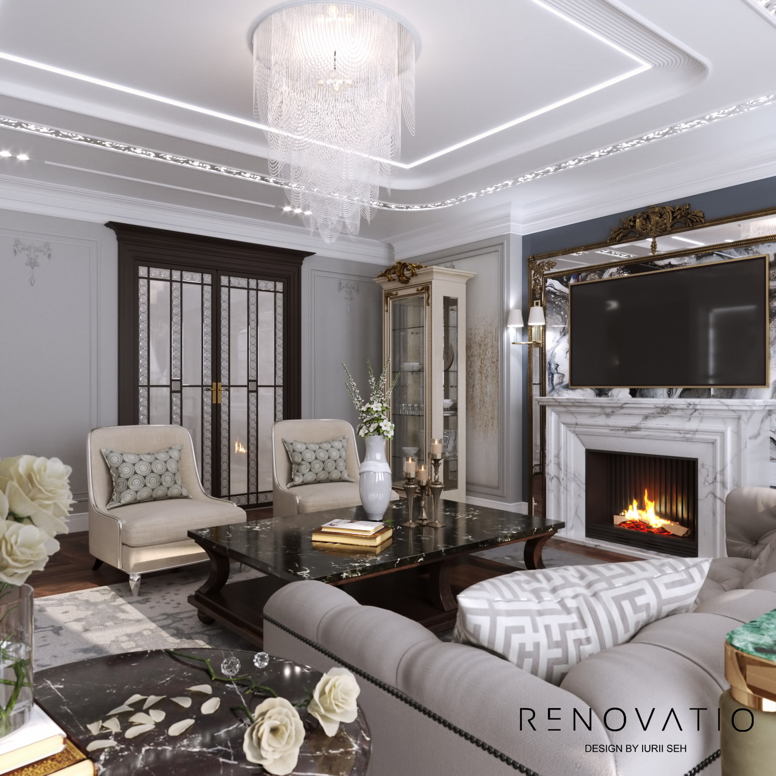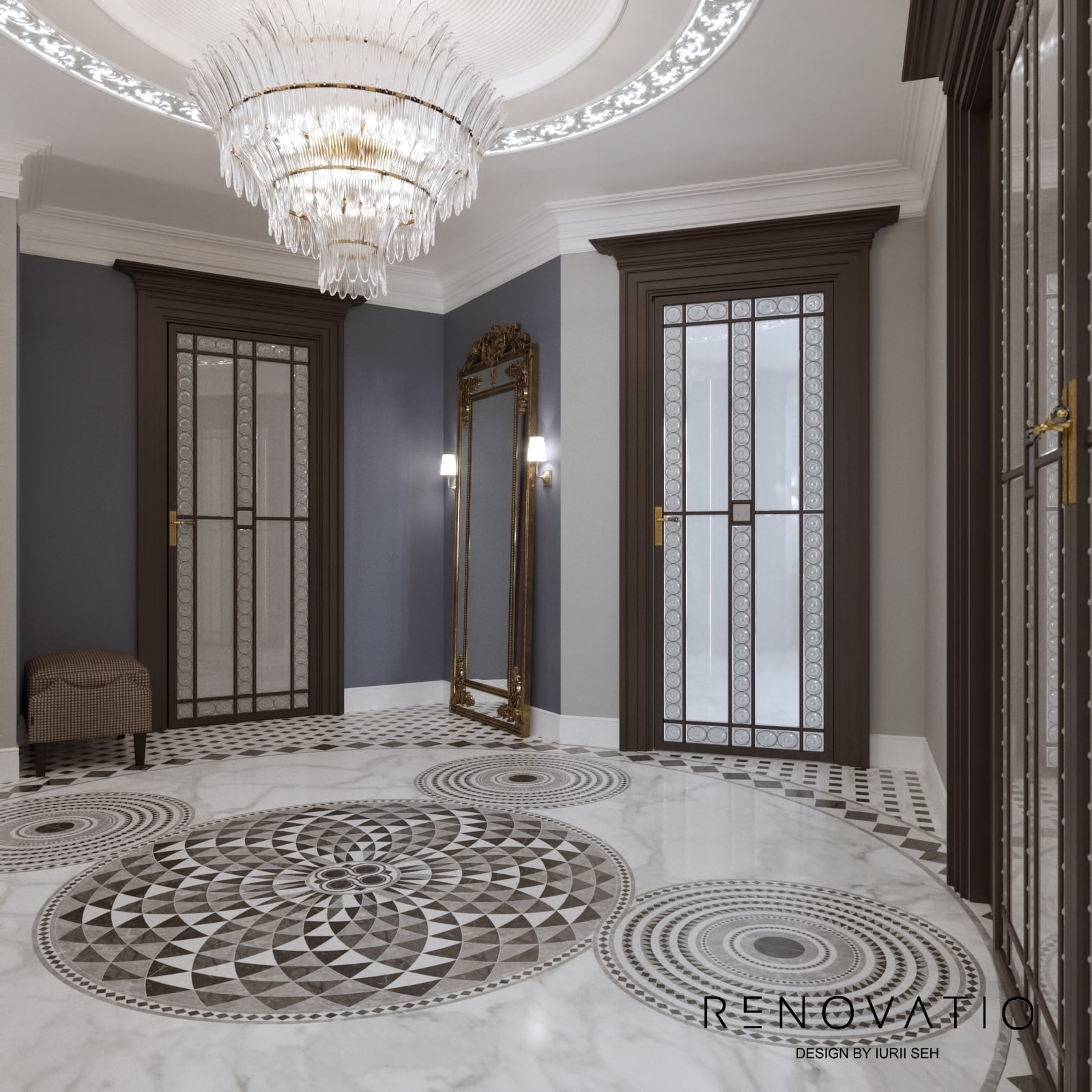 Bathrooms are small, but due to mirrors we were able to increase the visual space. The stucco molding on the entire wall has become an accent in the living room. It complements the art deco style, due to its location opposite the window, it is always noticeable. The design combines elements of neoclassical architecture with modern motives in an original way.