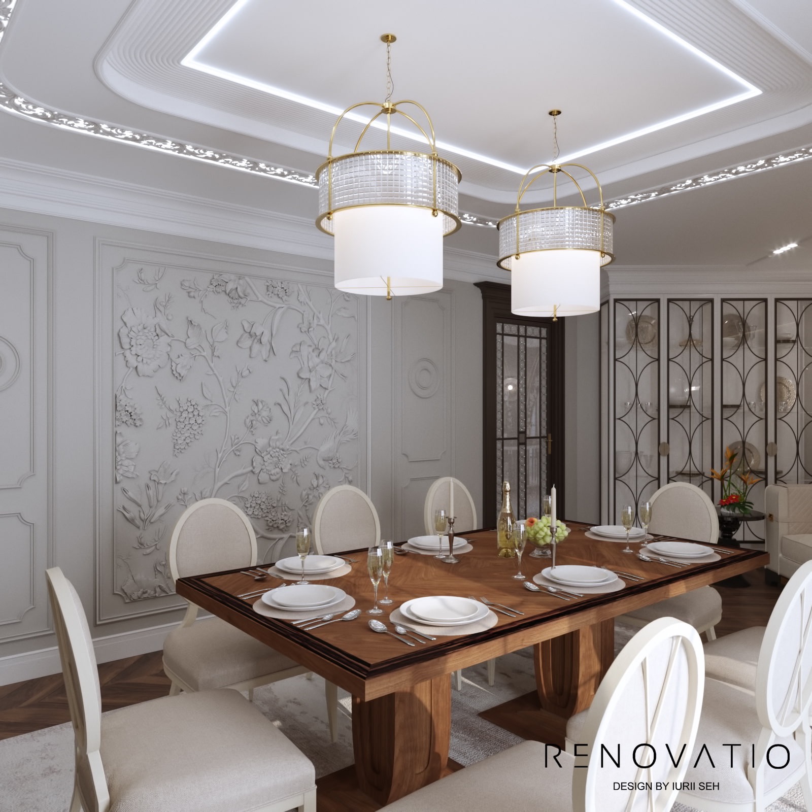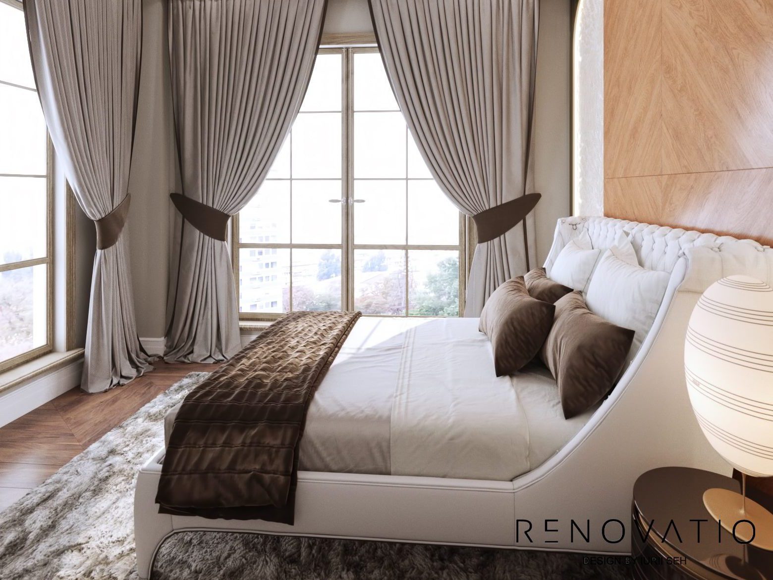 The symbiosis of round and square shapes is about a 1722 sq.ft club house. Used all kinds of shades of beige, brown, gray, as well as black and conservative black and white.